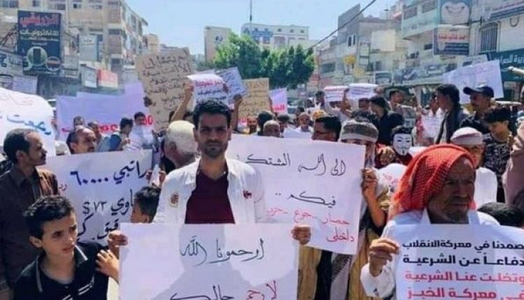 شهدت مدينة تعز , السبت , تظاهرة احتجاجية على إنهيار العملة الوطنية وتداعياتها الخطيرة.