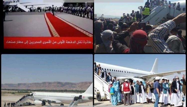 شاهد الفرق.. إستقبال مهيب لأسرى الحوثيين في صنعاء وإهمال الشرعية لأسراها في سيئون (صور)
