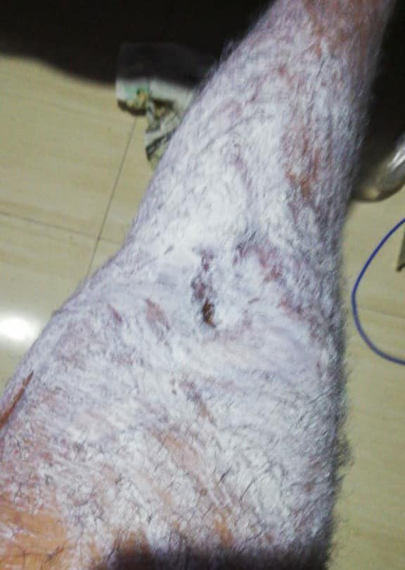 أحرق أحدُ الجرحى من محافظة تعز الذين ذهبوا إلى في الهند للعلاج ، رجله أمس، بعد أن ضاقت به الارض بما رحبت ، وأوصلته اللجنة الطبيه في تعز إلى هكذا وضع ، وقطعت عنهم المصاريف والمستحقات، رغم الوعود التي تلقاها من الجميع دون تنفيذ .
