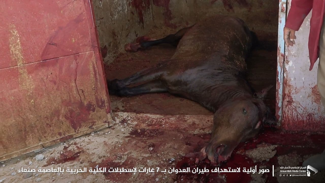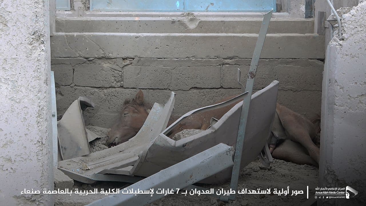 وفي السياق، أشار مصدر أمني، إلى نفوق عدد من الخيول العربية الأصيلة، جراء استهداف طيران العدوان الإسطبلات في الكلية الحربية بثلاث غارات.