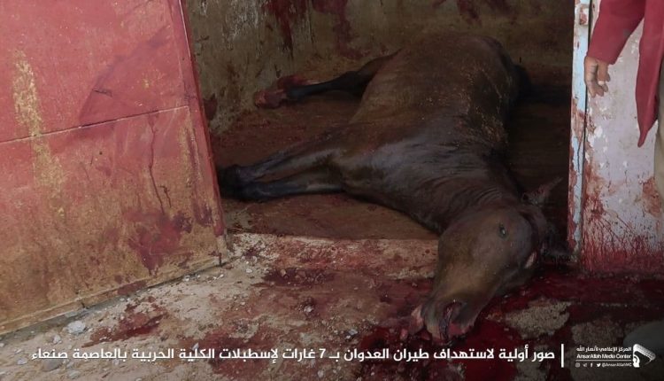 وفي السياق، أشار مصدر أمني، إلى نفوق عدد من الخيول العربية الأصيلة، جراء استهداف طيران العدوان الإسطبلات في الكلية الحربية بثلاث غارات.