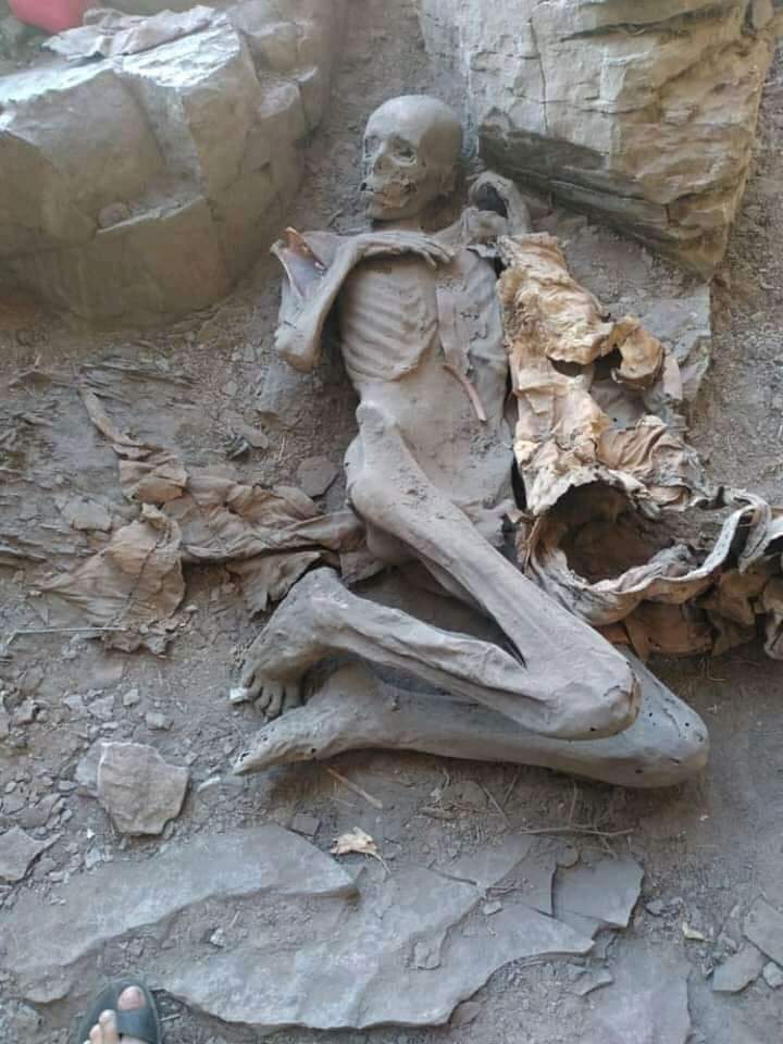 بالصور.. ماطنون يعثرون على مومياء لأحد ملوك حمير في إب عمرها 2500 عام