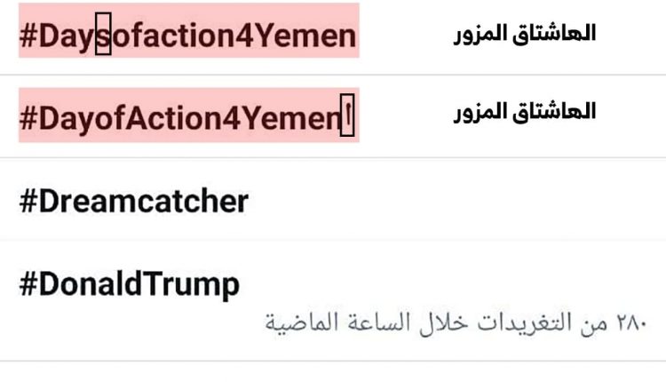 التحالف يحاول التشويش على حملة التغريدات بخصوص إرهاب أمريكا وينشر هاشتاقات مزورة