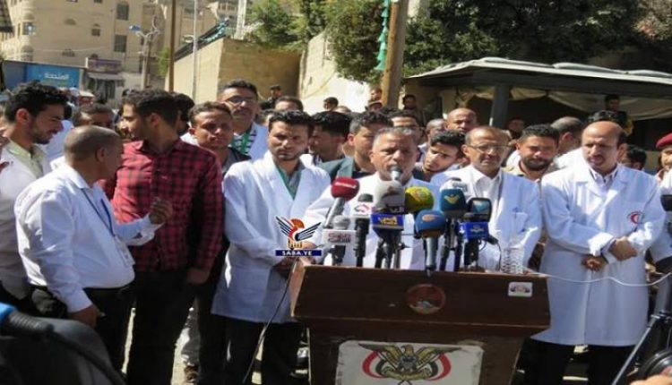 واعتبر البيان الذي تلاه مدير مكتب الصحة بالأمانة الدكتور مطهر المروني، منع دخول المشتقات النفطية، كارثة إنسانية على القطاع الصحي.