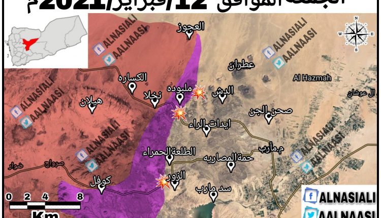 خريطة توضح المناطق التي سيطر عليها الحوثيون اليوم ومناطق الاشتباكات حتى هذه اللحظات في معركة مدينة مأرب الحاسمة