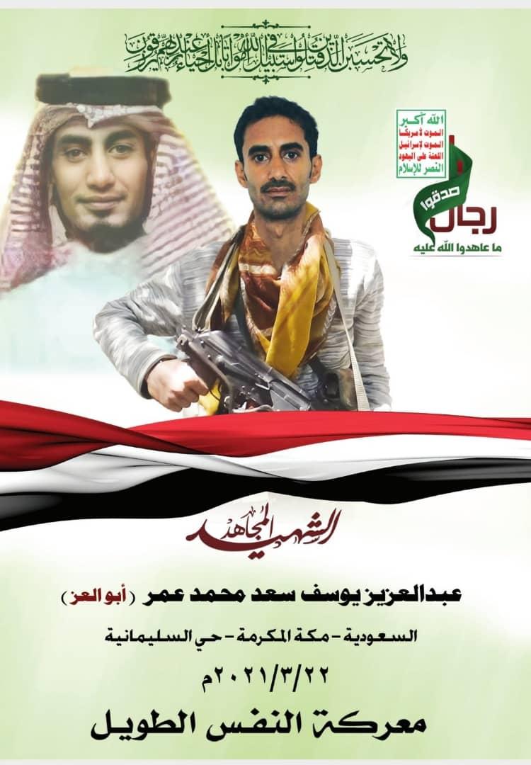 وكتب الحوثي ، عبر “تويتر”: “الشهيد من مكة المكرمة عبدالعزيز يوسف”.