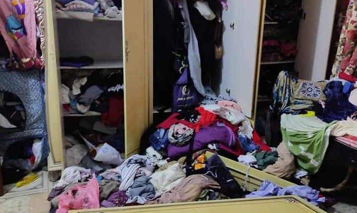 وتظهر الصور المتداولة، خزانة الملابس الشخصية الخاصة لأسرة الشيخ الخرج، التي تم اقتحامها في وقت سابق يوم أمس.