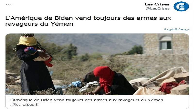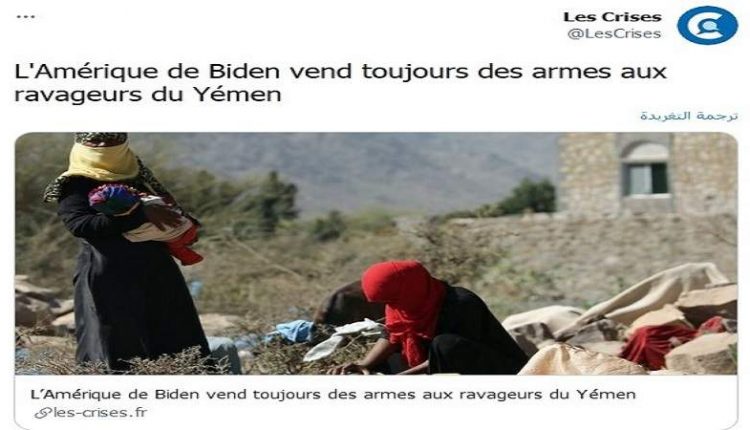 وقال موقع “ليس كخيز- les crises” في تقرير مطول بعنوان “أمريكا بايدن تشارك في الحرب على اليمن “للكاتب لديه مدية بنيامين وأرييل جولد”: يبدو أن الرئيس الأمريكي جو بايدن وافق على الاحتفاظ بإمدادات كبيرة من الأسلحة الأمريكية الصنع في منطقة الشرق الأوسط.