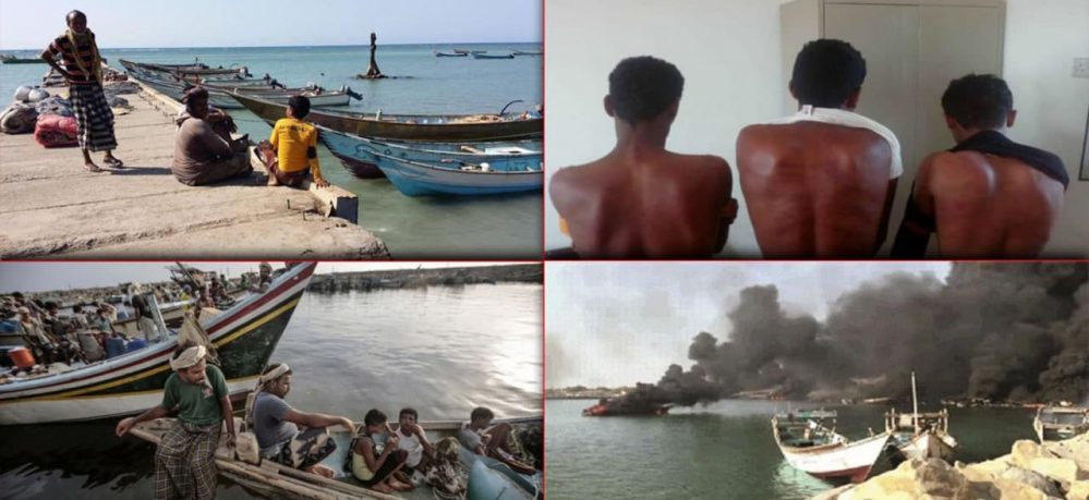 ويعاني الصيادون اليمنيون من انتهاكات عديدة تمارسها قوات التحالف بحقهم، منذ ست سنوات، من بينها المنع من الاصطياد في السواحل اليمنية، والقصف والاحتجاز والتعذيب بتهم مختلفة ونقلهم في كثير من الأحيان إلى سجون في إريتريا والسعودية وإسرائيل.