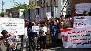 وطالب المشاركون في الوقفة بالقصاص العادل من قتلة المواطن صادق عبدالله الأهنومي متسائلين عن سبب تساهل الأجهزة الأمنية مع القاتل رغم ثبوت عملية القتل بالأدلة المادية عليه.