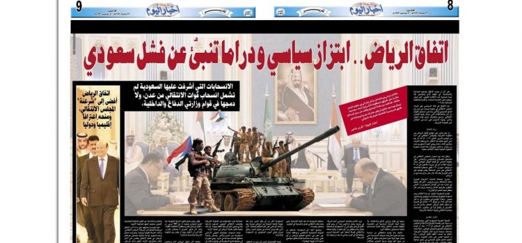 هاجمت صحيفة أخبار اليوم -التابعة لنائب هادي “علي محسن الأحمر”- السعودية، ووصفتها بالدولة الفاشلة سياسياً وغير المؤتمَنة، واتهمتها بخذلان اليمن.