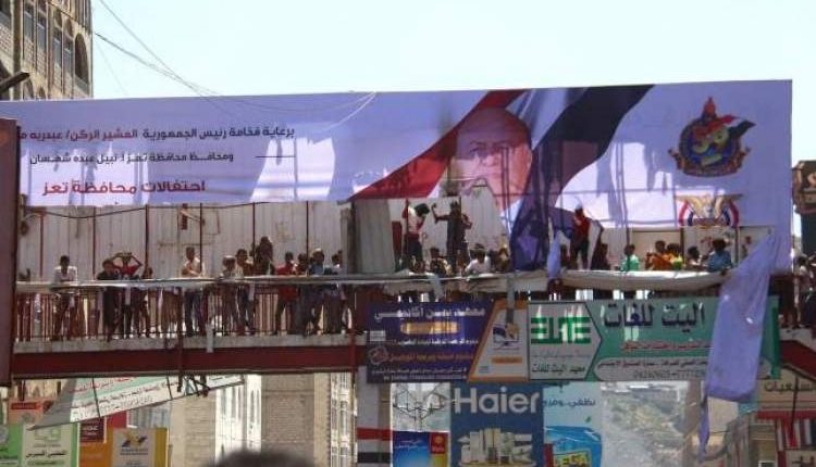 وأكدت مصادر محلية، أن المحتجون مزقوا جميع صور هادي في شارع جمال، وسط المدينة، احتجاجاً على تردي الأوضاع وانهيار الريال اليمني إلى أكثر 1200 أمام الدولار الواحد.