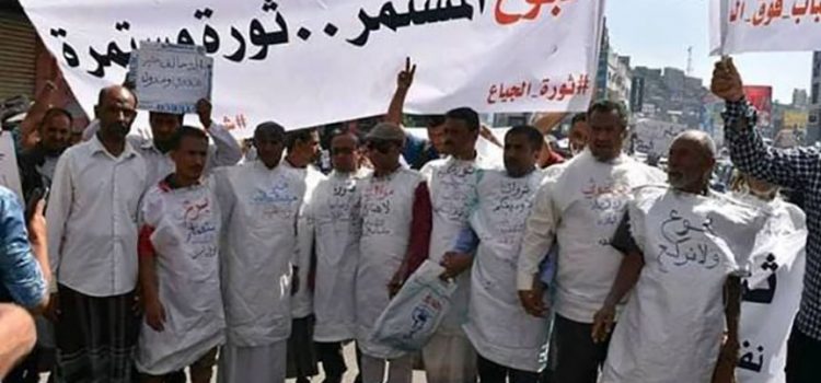 وطالب الثوار الذين تظاهروا في ساحة الحرية وأمام مبنى السلطة المحلية بتعز، بمحاسبة الفاسدين المسؤولين عن تدهور العملة المحلية وارتفاع الأسعار وتردي الأوضاع المعيشية.
