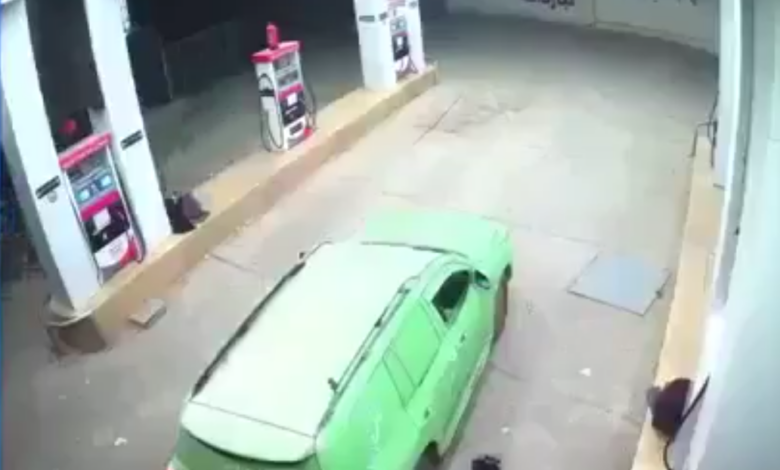 وتداول ناشطون بشكل واسع على مواقع التواصل الاجتماعي فيديو لمواطن لحظة هروبه بسيارته الملونة بالأخضر وهو اللون السائد بمناسبة الاحتفال بالمولد النبوي بعد تزويدها بالبترول في احدى محطات المشتقات النفطية بالعاصمة صنعاء .
