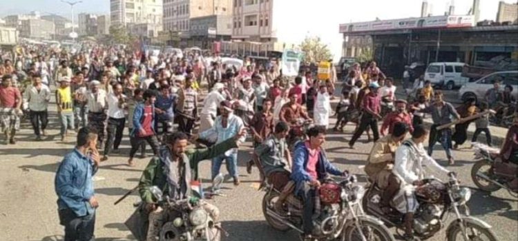 خرج المئات من أبناء مديرية الحبيلين (ردفان) في محافظة لحج – الثلاثاء- في تظاهرة غاضبة، تنديداً بالأوضاع المعيشية الصعبة التي تعصف بمناطق سيطرة التحالف.