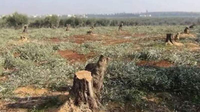 واصلت الجماعات التكفيرية المرتبطة بالنظام التركي اعتداءاتها على المدنيين وأملاكهم في ريف حلب الشمالي بسوريا حيث أقدمت مؤخراً على قطع المئات من أشجار الزيتون في منطقة عفرين المحتلة.