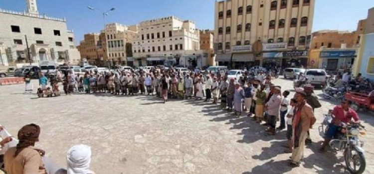 احتشد عدد من المواطنين -الاثنين- أمام ساحة قصر الرناد بمدينة تريم في محافظة حضرموت؛ احتجاجاً على ارتفاع الأسعار وتهاوي العملة المحلية، وغيرها من الأزمات والمآسي الاقتصادية والمعيشية التي ضاعفت معاناة المواطنين.