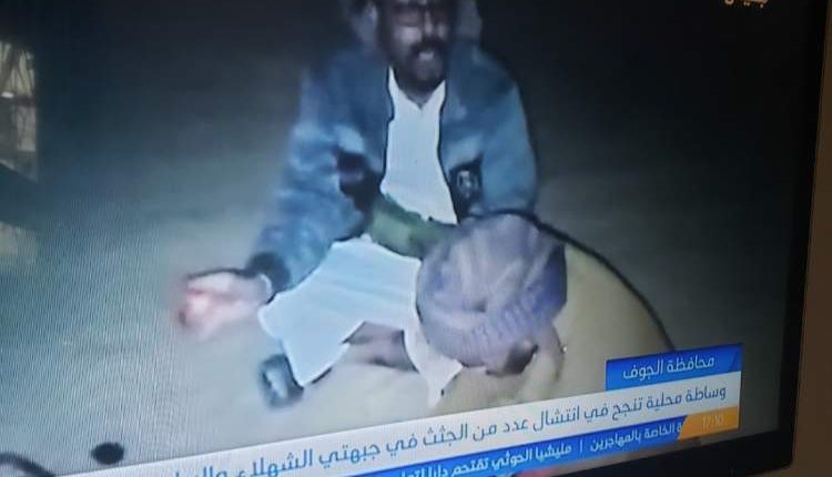 نجحت وساطة قبلية، الأحد، بإنتشال عشرات الجثث من قتلى الشرعية في محافظة الجوف،شمالي اليمن.