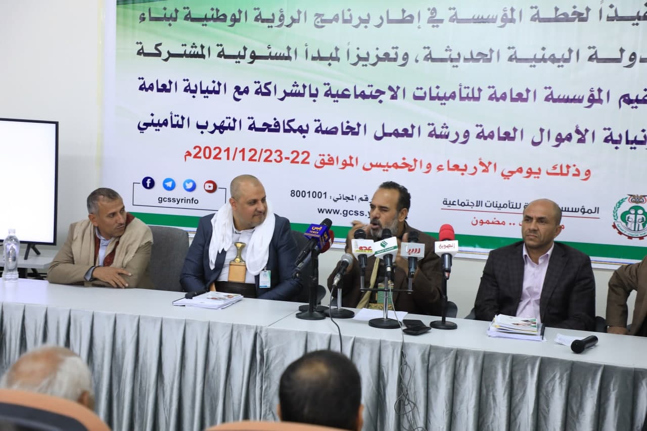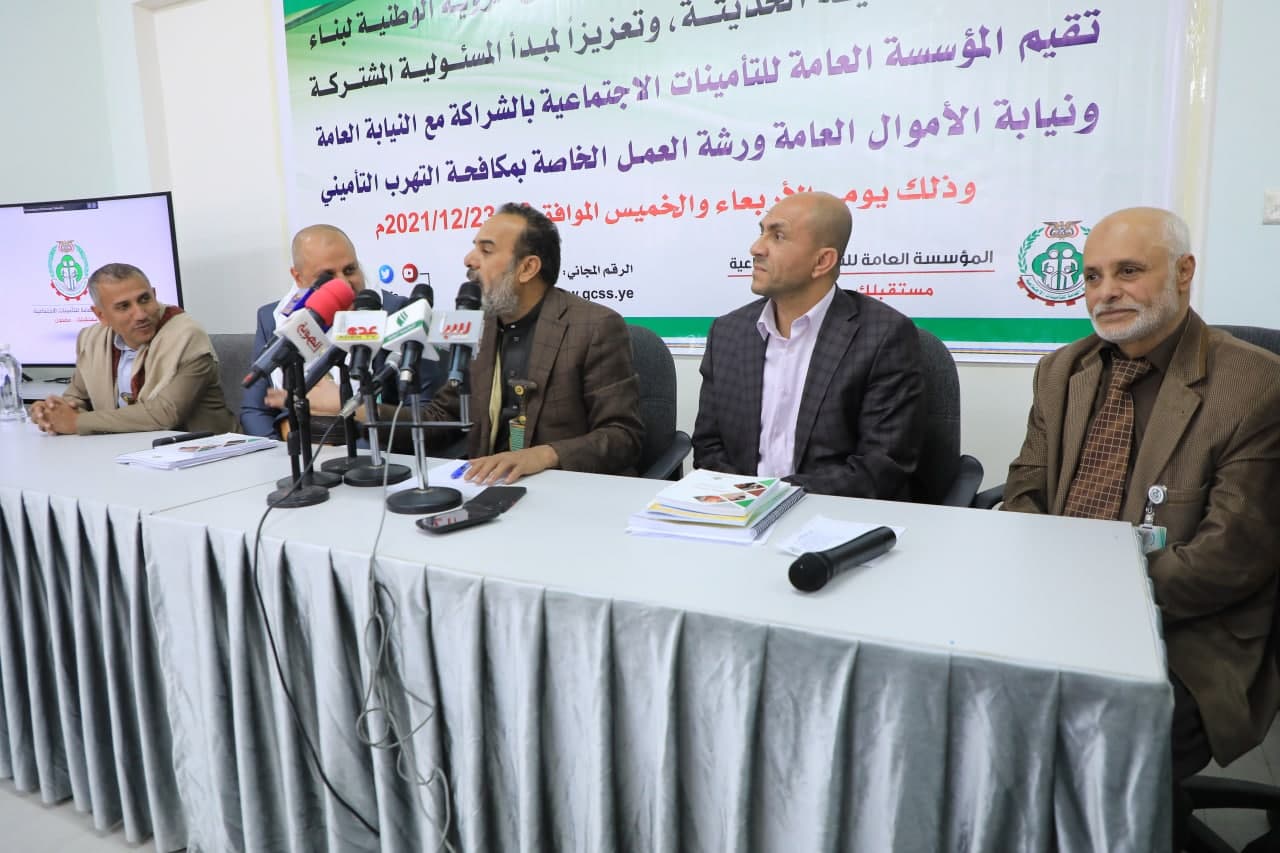 وفي ختام الورشة بحضور وزير النقل عامر المراني ومحامي عام الأموال العامة القاضي علي المتوكل ورئيس المكتب الفني بمكتب النائب العام القاضي أحمد الجندبي، أوضح رئيس المؤسّسة العامة للتأمينات شرف الدين الكحلاني أن الورشة ركزت على تشخيص واقع العمل التأميني وجوانب القصور في الأداء الميداني وعلاقة المؤسّسة مع النيابة والأجهزة القضائية.