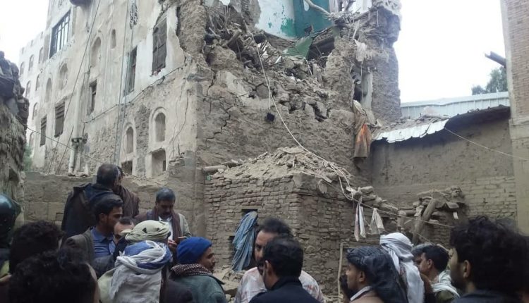 انهيار منزل في صنعاء القديمة متأثراً بقصف التحالف الجوي “صور”