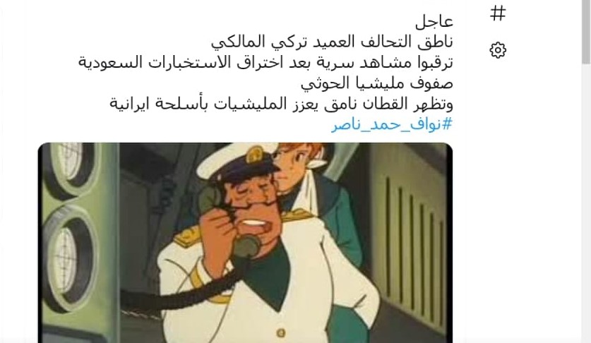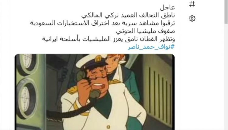 اشتعلت منصات التواصل الاجتماعي وعلى رأسها التويتر بتعليقات ساخرة على الفضيحة التي نالت من متحدث التحالف تركي المالكي حيث أعلن عن كشف خطيرللبالستيات الـ”حوثية” في ميناء الحديدة والتي تعود لفيلم ثائقي صوره الجنود الأمريكيون في العراق.