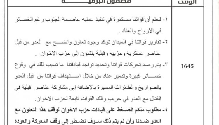 قائد قوات العمالقة يعترف لأول مرة بخسائرهم مئات القادة والجنود بسبب خيانة واضحة تتعاون مع “الحوثيين”.. ويخاطب قائد العمليات بالتحالف: سنوقف المعركة ونعود (وثيقة رسمية)