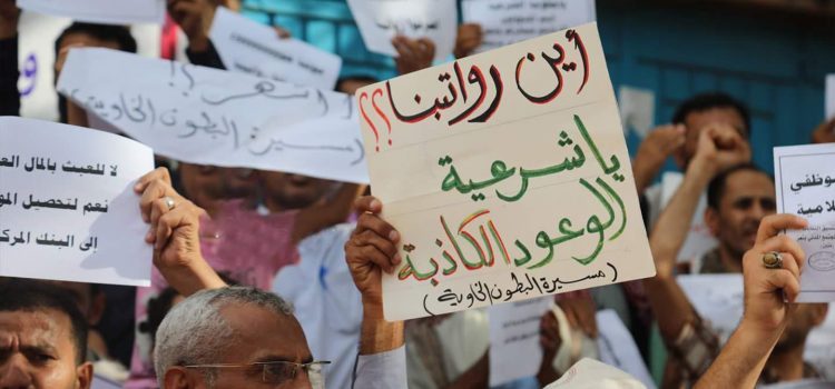 الموظفون المدنيون أكدوا أنهم يئسوا من تصدير الوعود الزائفة من قِبل رئيس حكومة هادي “معين عبدالملك” بتسوية أوضاعهم وصرف مرتباتهم المتأخرة وعلاواتهم السنوية.