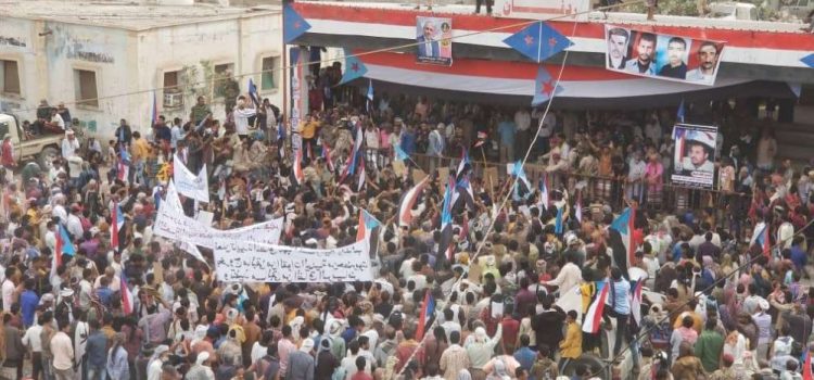 احتشد عدد من أنصار المجلس الانتقالي -الثلاثاء- في مدينة الحبيلين (ردفان) بمحافظة لحج، للمطالبة برحيل قوات هادي من محافظتي حضرموت والمهرة ومنطقة شقرة في أبين.