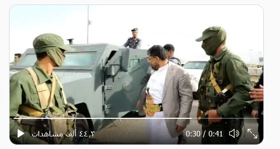 ونشر الحوثي مقطع فيديو على صفحته الرسمية بمواقع التواصل الاجتماعي مكتفية عبارة “شاهد المدرعات اليمنية”.