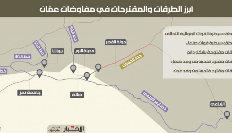 وكان رئيس اللجنة العسكرية التابعة لحكومة صنعاء في مفاوضات عَمّان، اللواء يحيى الرازمي، قال منذ يومين إنّ “فريق صنعاء قدّم مبادرة جدية لفتح 3 طرق في تعز بهدف إنهاء معاناة المواطنين وتسهيل حركة المواطنين والمركبات بكل سلاسة”، لافتاً إلى “عدم وجود تجاوب صريح من الطرف الآخر معها”.