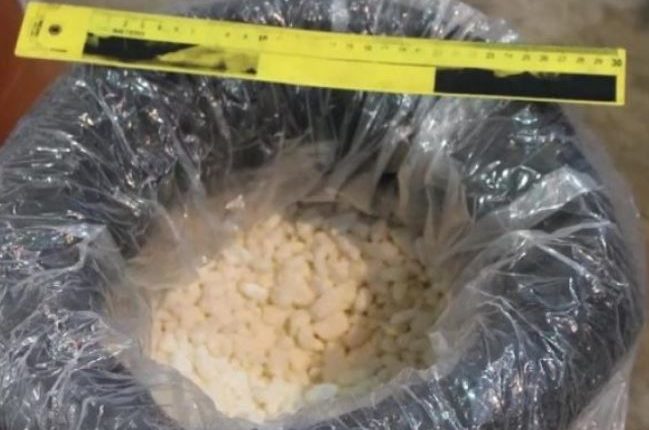 وتظهر الصور التي نشرتها السلطات عشرات البراميل البلاستيكية التي تحتوي على المنتج على شكل أحجار بيضاء صغيرة.