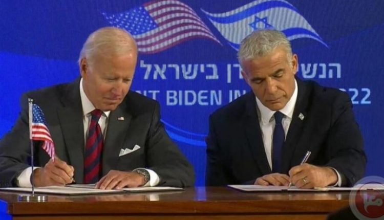 نشرت وسائل إعلام دولية نص وثيقة ما يسمى بـ”إعلان القدس” الذي تم توقيعه اليوم الخميس بين الرئيس الأمريكي جوزيف بايدن ورئيس وزراء الكيان الصهيوني يائير لابيد، والتي نصت على التزام واشنطن بحماية الكيان الإسرائيلي ودعمه وامتلاكه قدرات عسكرية أفضل من غيره من الدول في المنطقة.