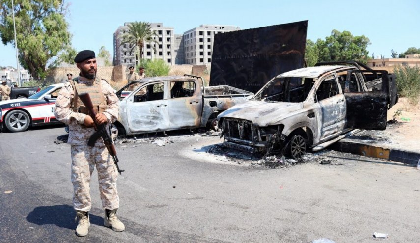 ونشرت مواقع تواصل اجتماعي مقاطع فيديو تظهر تبادل النيران في منطقتي “باب بن غشير” و”شارع الزاوية” وسط المدينة، واحتراق سيارات في أحد الأحياء.