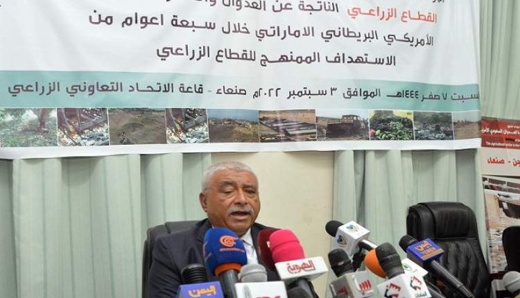 كشف وزير الزراعة والري في حكومة صنعاء ، المهندس عبدالملك الثور، في مؤتمر صحفي حول أضرار وخسائر القطاع الزراعي جراء حرب التحالف على اليمن ، إلى أن الخسائر والأضرار المباشرة منذ بداية حرب التحالف بلغت ٧مليارات و٤٧٧ مليون و٥٠٧ آلاف دولار.