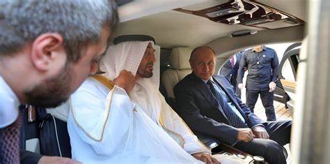 يزور رئيس الإمارات محمد بن زايد روسيا الاتحادية، غد الثلاثاء، حيث سيلتقي الرئيس الروسي فلاديمير بوتين، والذي يبدوا أنه غاضب من تحركات ابن زايد في ملف الطاقة الذي يعتبر ورقة ضغط روسية على الغرب.
