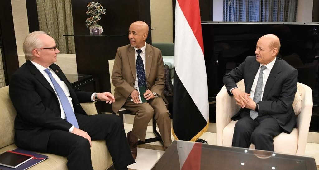 والتقى المبعوث الأمريكي في العاصمة السعودية برشاد العليمي، رئيس سلطة الرئاسي، ..