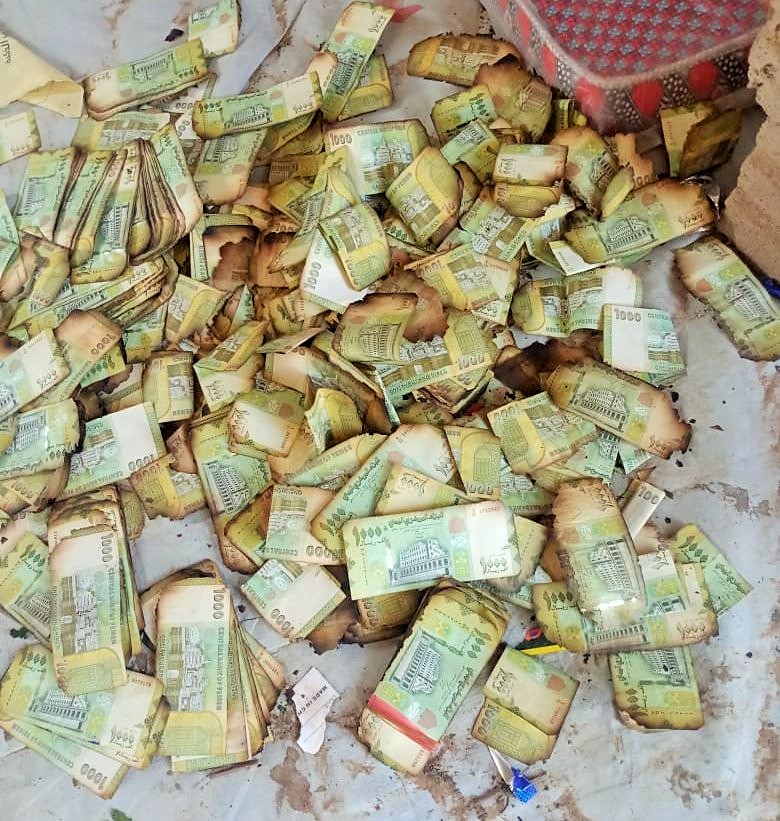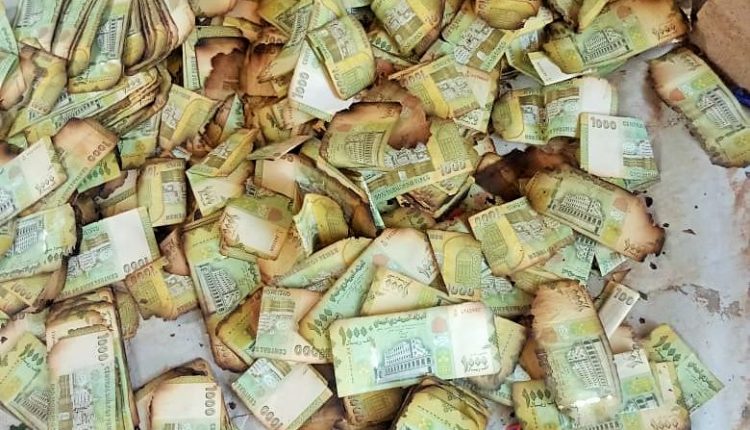 احترقت الملايين من الريالات كانت في طريقها إلى مسلحي التحالف بمعسكرات مأرب الخاضعة لسيطرة حزب الإصلاح.