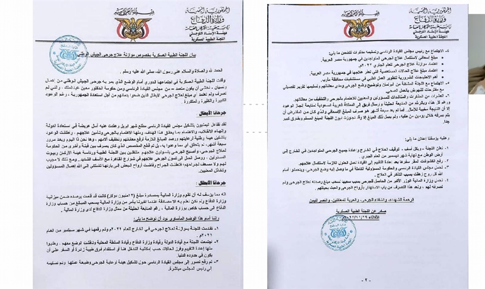 وأشارت اللجنة إلى أن وضع الجرحى في الخارج اصبح صعب جدا وأن غالبيتهم اضطروا للتسول ما دفعها لقرار اعادتهم للداخل.