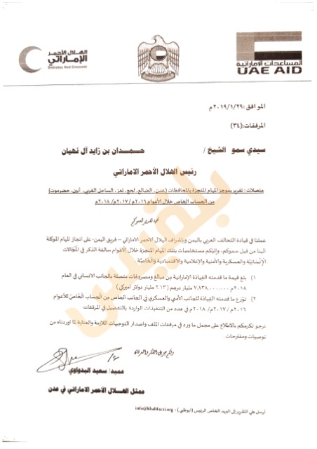ونشرت القناة تقرير سري للهلال الأحمر الإماراتي، من ٣٦ صفحة يتضمن تفاصيل ما أنفقته الإمارات في اليمن منذ عام ٢٠١٦ حتى عام ٢٠١٨.