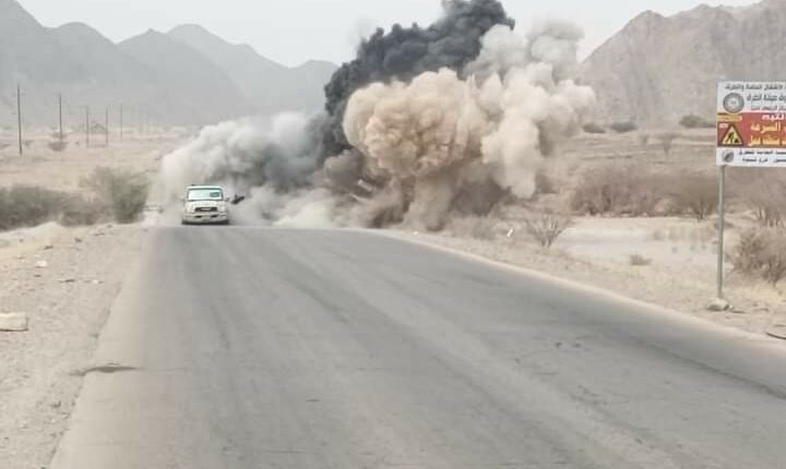 وأكدت مصادر محلية أن انفجارا بعبوتين ناسفتين استهدف طقمين عسكريين لقوات الانتقالي في منطقة السلف بين نصاب ومرخة أدى لجرح عدد من مقاتلي العمالقة.