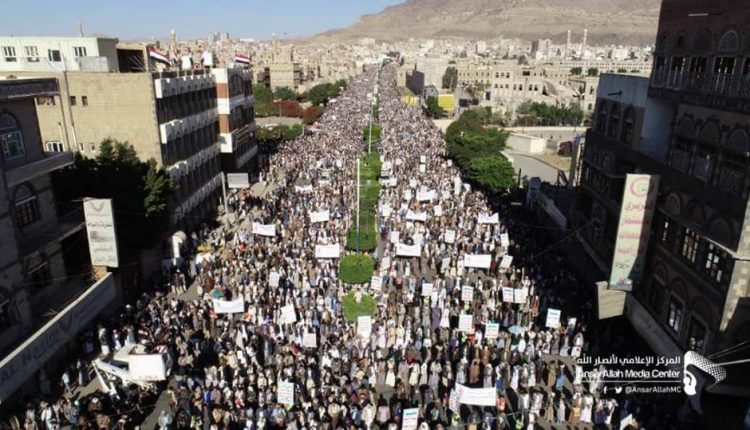 ويخرج اليمنيون،  غدا،  في مسيرة جماهيرية بالعاصمة صنعاء. والمحافظات الخاضعة تحت سيطرتها،  تحمل شعار “الحصار حرب”، في إشارة إلى أن استمرار حصار التحالف على اليمن يعتبره اليمنيون جزء من الحرب وأنهم يعدّون للرد عليه.