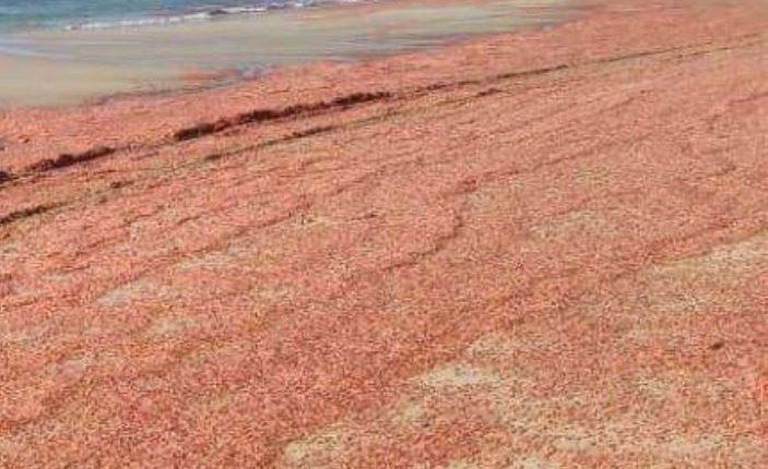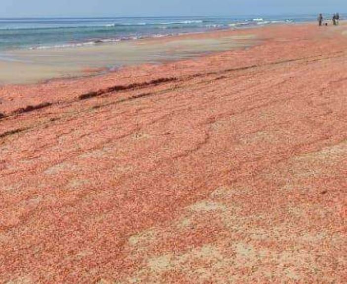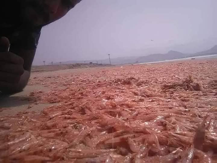 وقال مواطنون ان كميات مهولة من الروبيان غطت ساحل حوف بالمهرة عقب نفوقها بصورة غريبة وغير مسبوقة .