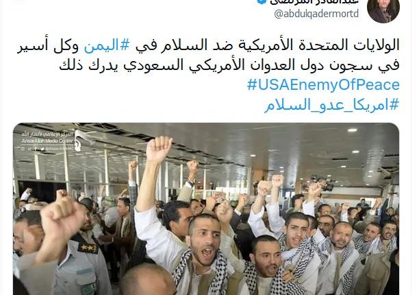 وتضمن الوسم تغريدات لقيادات رفيعة في حركة انصار الله “الحوثيين” اشارت إلى أن الدور الامريكي لتخريب السلام في اليمن لم يعد خفي.