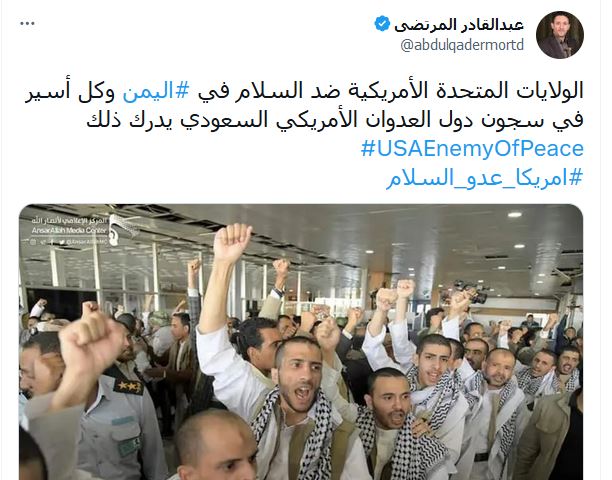 وحاز هشتاق #امريكا_عدو_السلام الذي اطلقه ناشطين موالين لحكومة صنعاء تفاعل واسع على مواقع التواصل الاجتماعي.