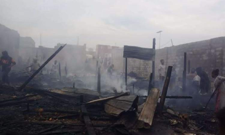 احرق مجهولون مخيما للمهمشين في ضواحي مدينة الغيضة عاصمة محافظة المهرة شرقي اليمن .