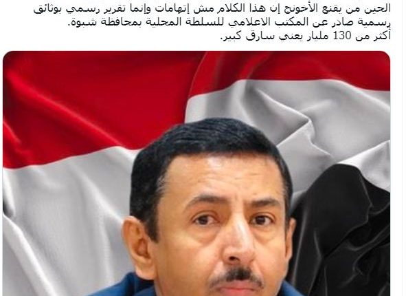 المجلسُ الانتقالي يعاودُ مهاجمةَ محافظ شبوة بفساد مليارَي