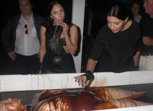 ونشرت ” ويكيليكس صور من مطعم النجوم “بيزا جيت” الذي ترتاده النخب الأمريكية، لعملية سحب سائل حيوي من جسم طفل مرمي وسط قطعة بيتزا وصور إباحية أخرى لا تزال موجودة على موقع المطعم في الأنترنت.