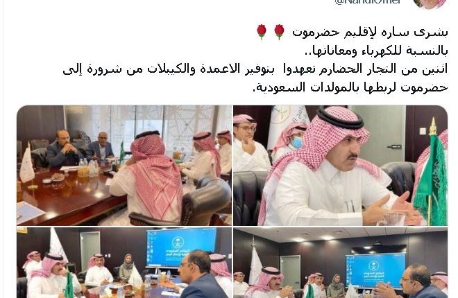 وقالت مصادر إن السفير السعودي محمد آل جابر أبلغ محافظ حضرموت مبخوت بن ماضي أنه سيتم ربط المحافظة بشبكة كهرباء السعودية.