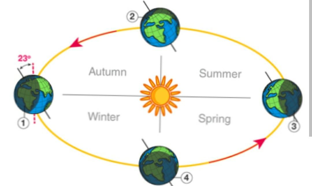 وأوضح ان القطب الشمالي للأرض في أقصى ميل له نحو الشمس، والقطب الجنوبي في أقصي ميل له بعيدا عن الشمس، فتتعامد الشمس فوق مدار السرطان عند خط عرض 23.5 درجة شمالاً .