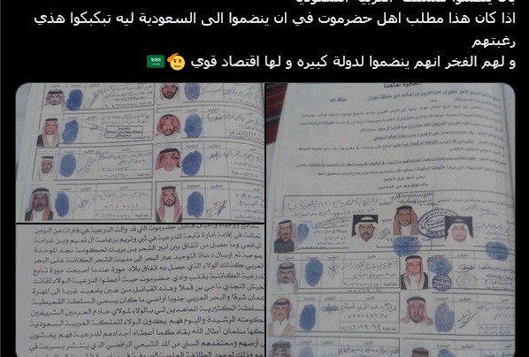 ونشرت المخابرات السعودية عبر حسابات بأسماء مستعارة بمواقع التواصل الاجتماعي ما قالت إنها وثائق من قيادات قبائل المهرة وحضرموت وشبوة يوقعون للسعودية باعترافهم لملكها سلمان بن عبدالعزيز ويمنحونه عهد الولاء له حاكماً على مناطقهم وأن هذه البيعة امتداد لبيعة أجدادهم في الماضي لسلطة الدرعية قديماً.